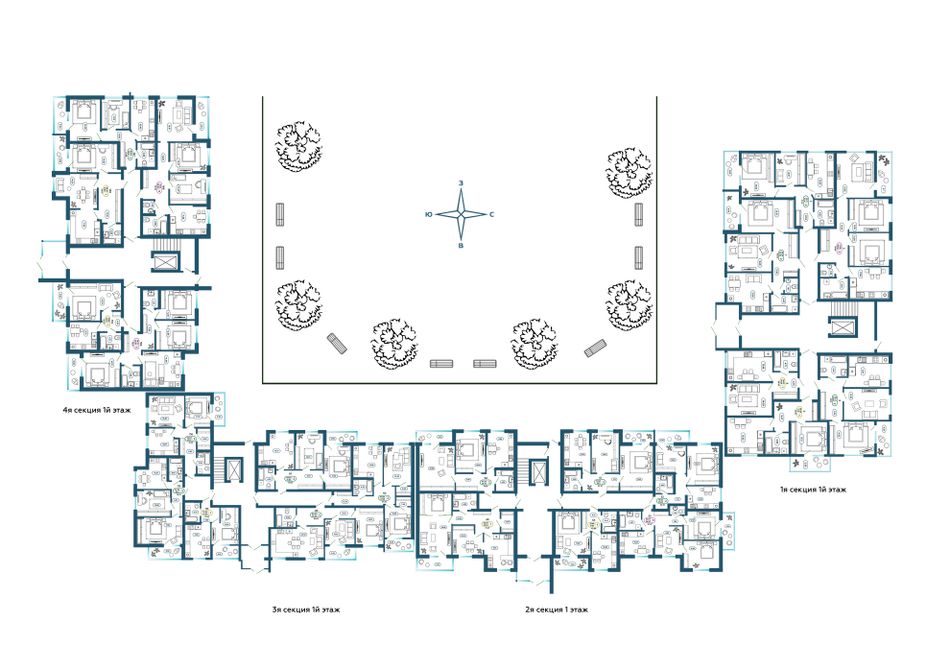 Восемь секций переменной этажности (5-9 этажей) с полностью благоустроенной территорией и закрытым двором.