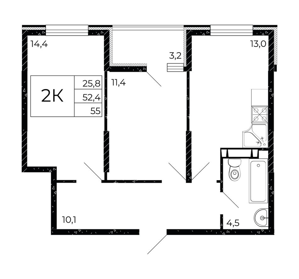 2-комн. | 39 - 56 м² | 6,4 - 7,9 млн ₽ |