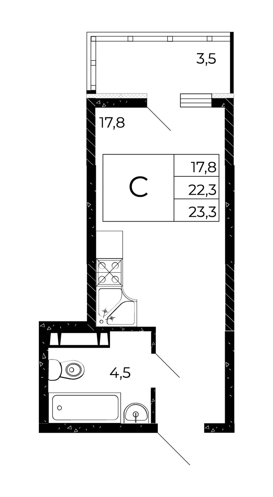 Общая площадь23,58 м²
