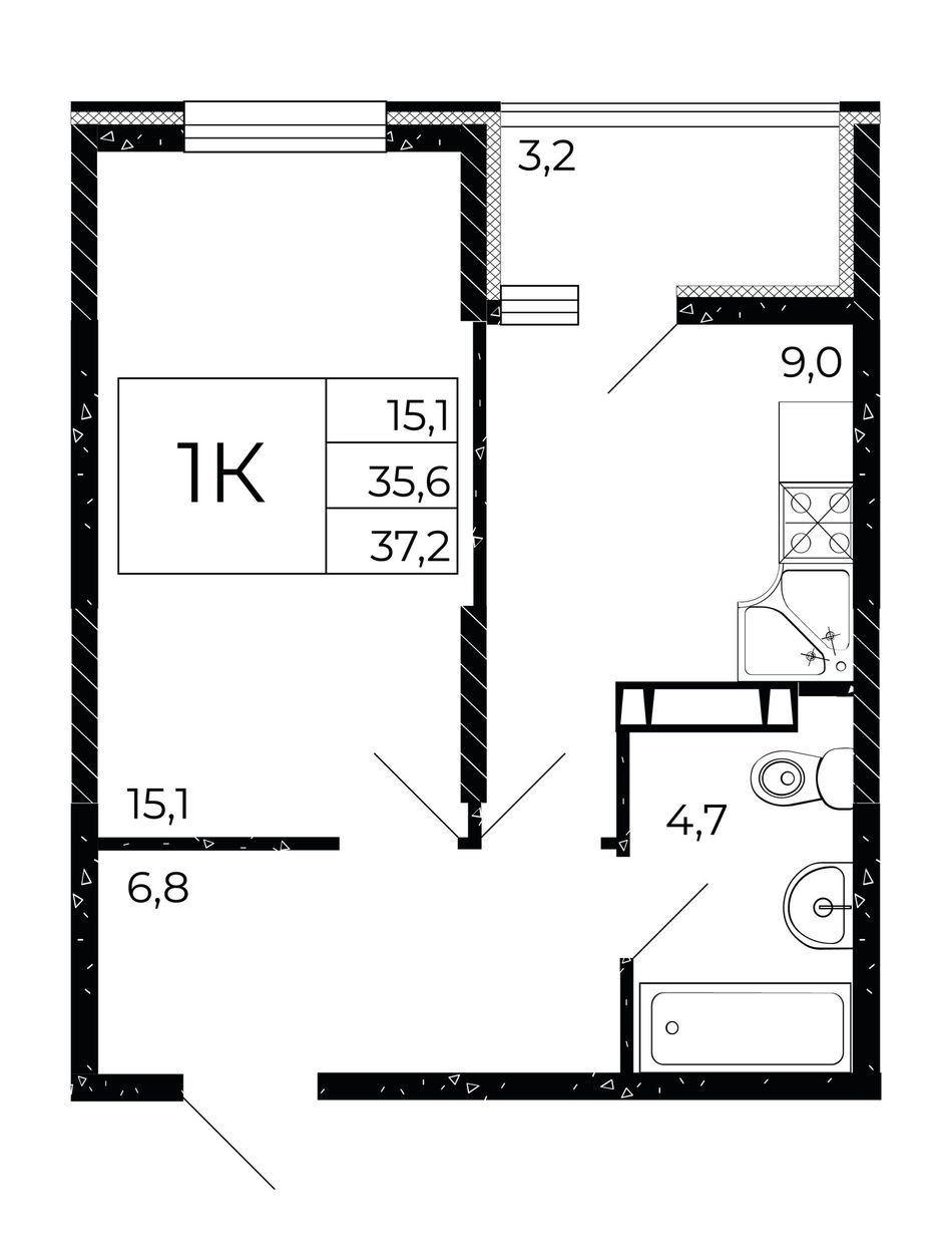 Общая площадь37,2 м²