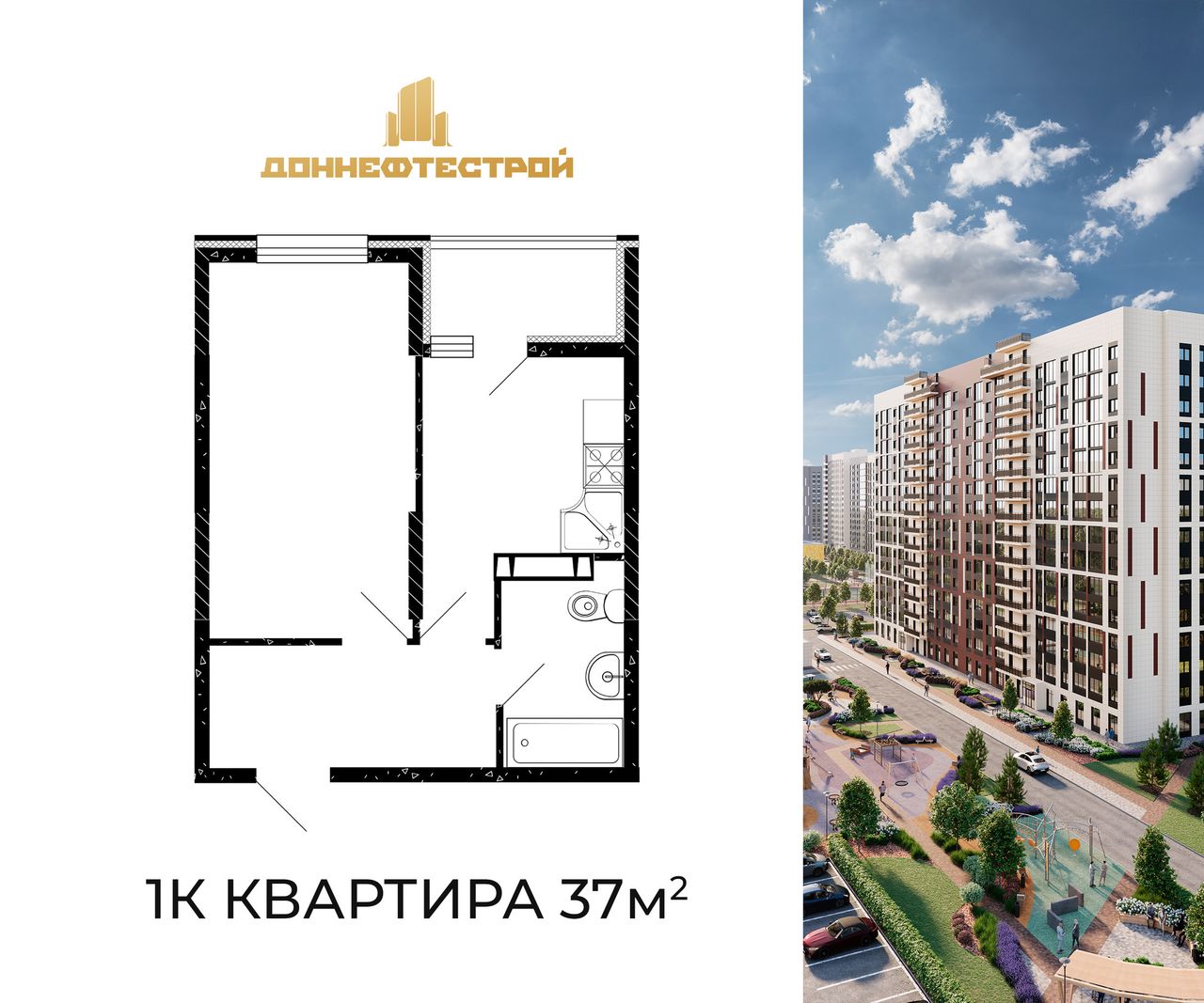 1-комнатная — 37 м² 3/15 эт. в Флора