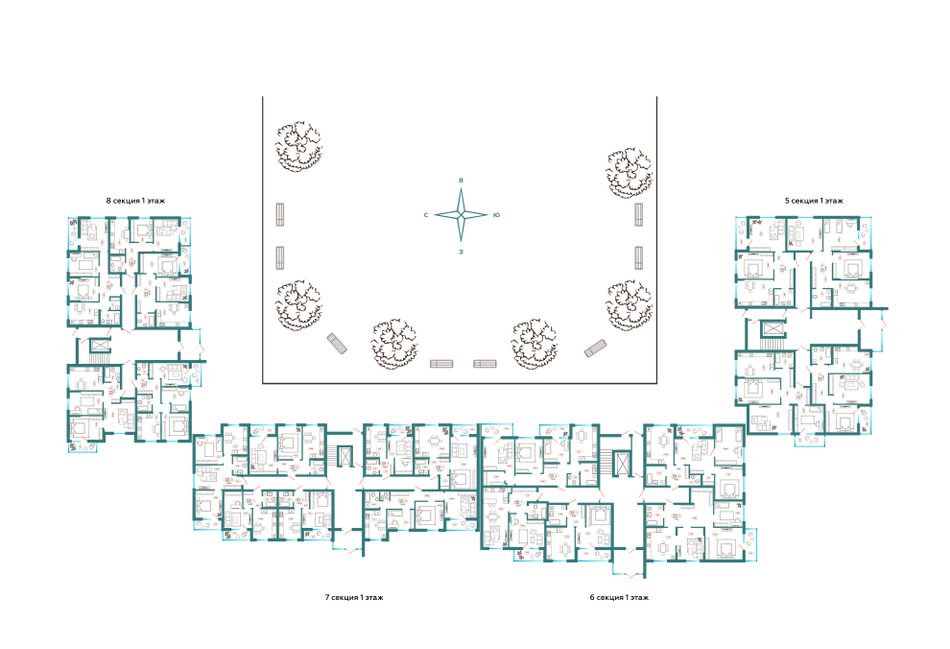 Восемь секций переменной этажности (5-9 этажей) с полностью благоустроенной территорией и закрытым двором.