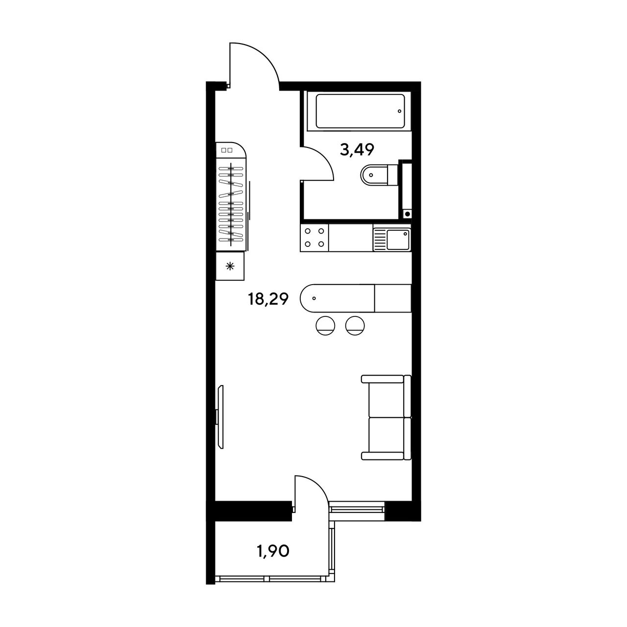 Общая площадь24,13 м²