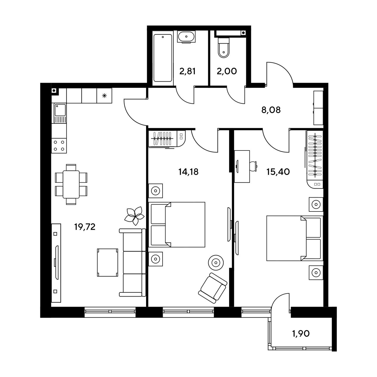 3-комнатная — 65,68 м² 22/25 эт. в Малина Парк