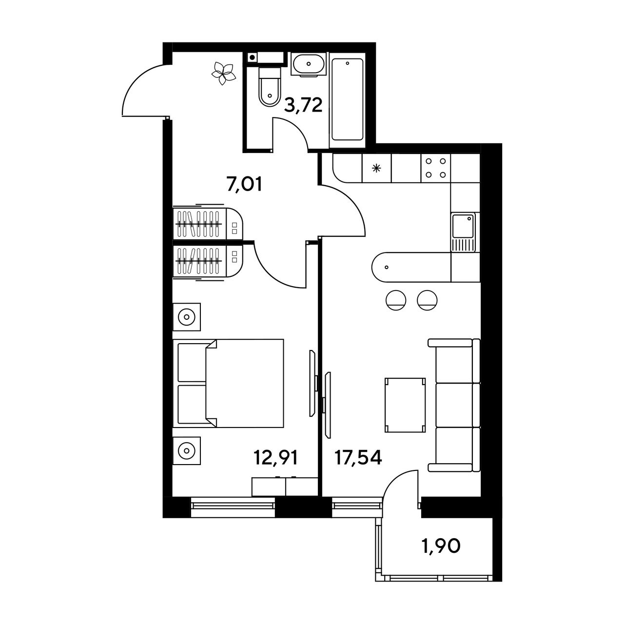Общая площадь43,2 м²