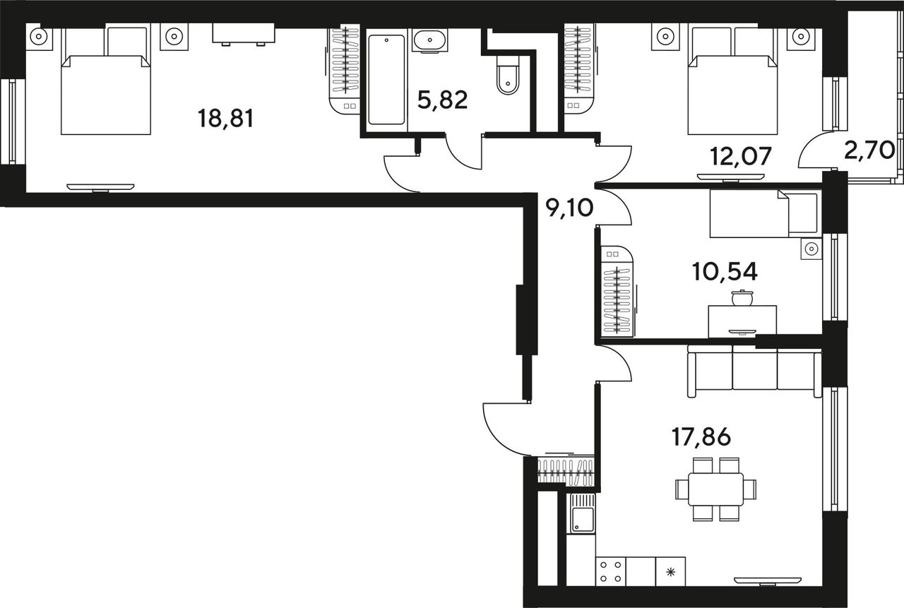 3-комнатная — 77,95 м² 20/25 эт. в Малина Парк