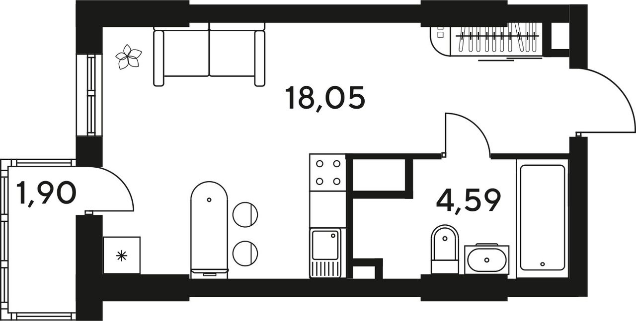 | Студия | 23 - 29 м² | 3,2 - 4,7 млн ₽ |