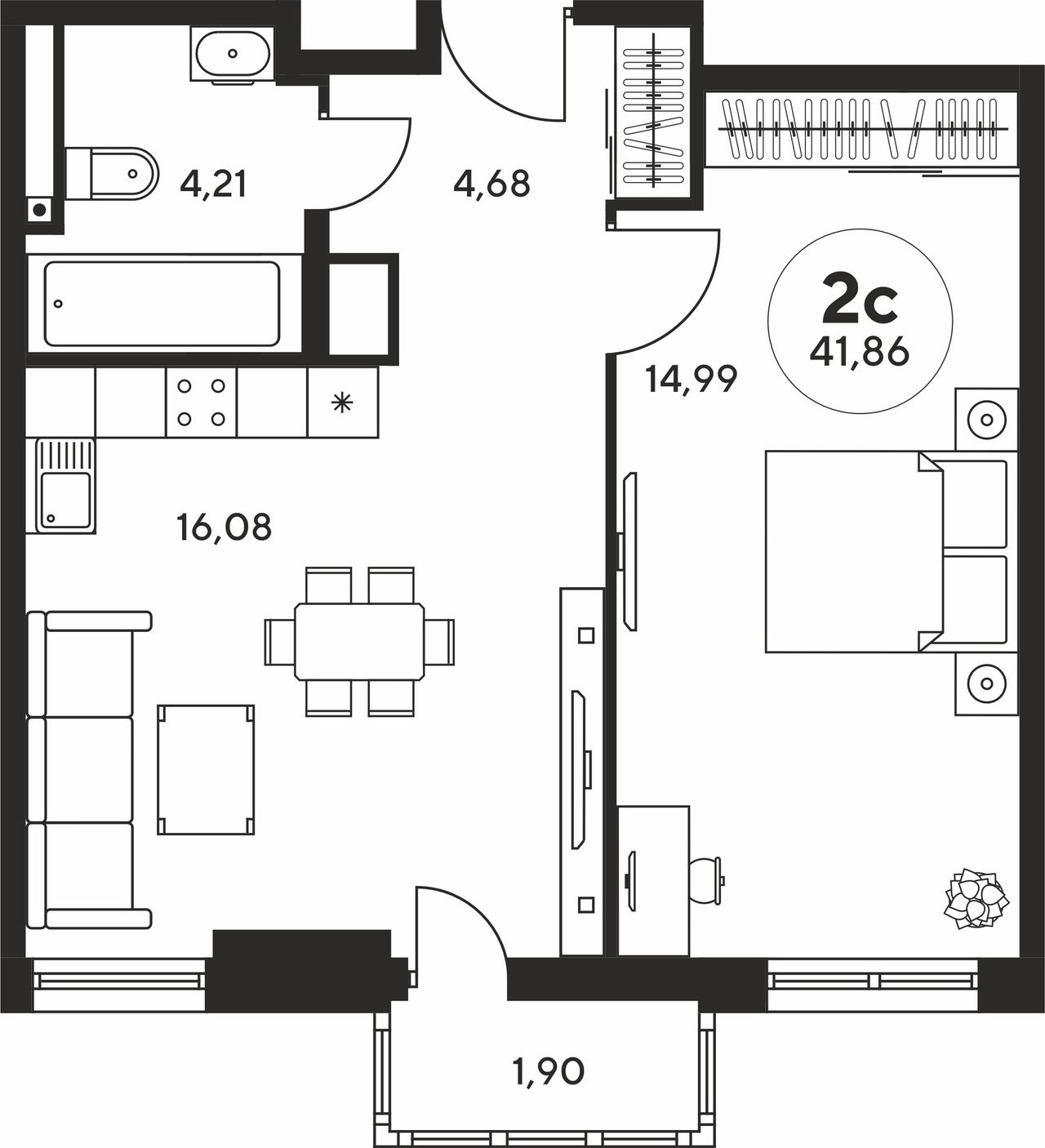 2-комнатная — 41,72 м² 25/25 эт. в GreenSide (Гринсайд)