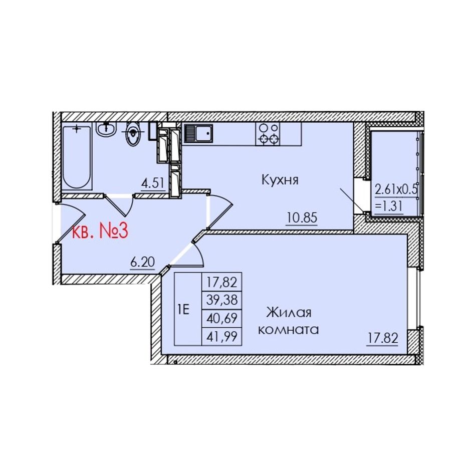 1-комнатная — 40,69 м² 1/20 эт. в Регата