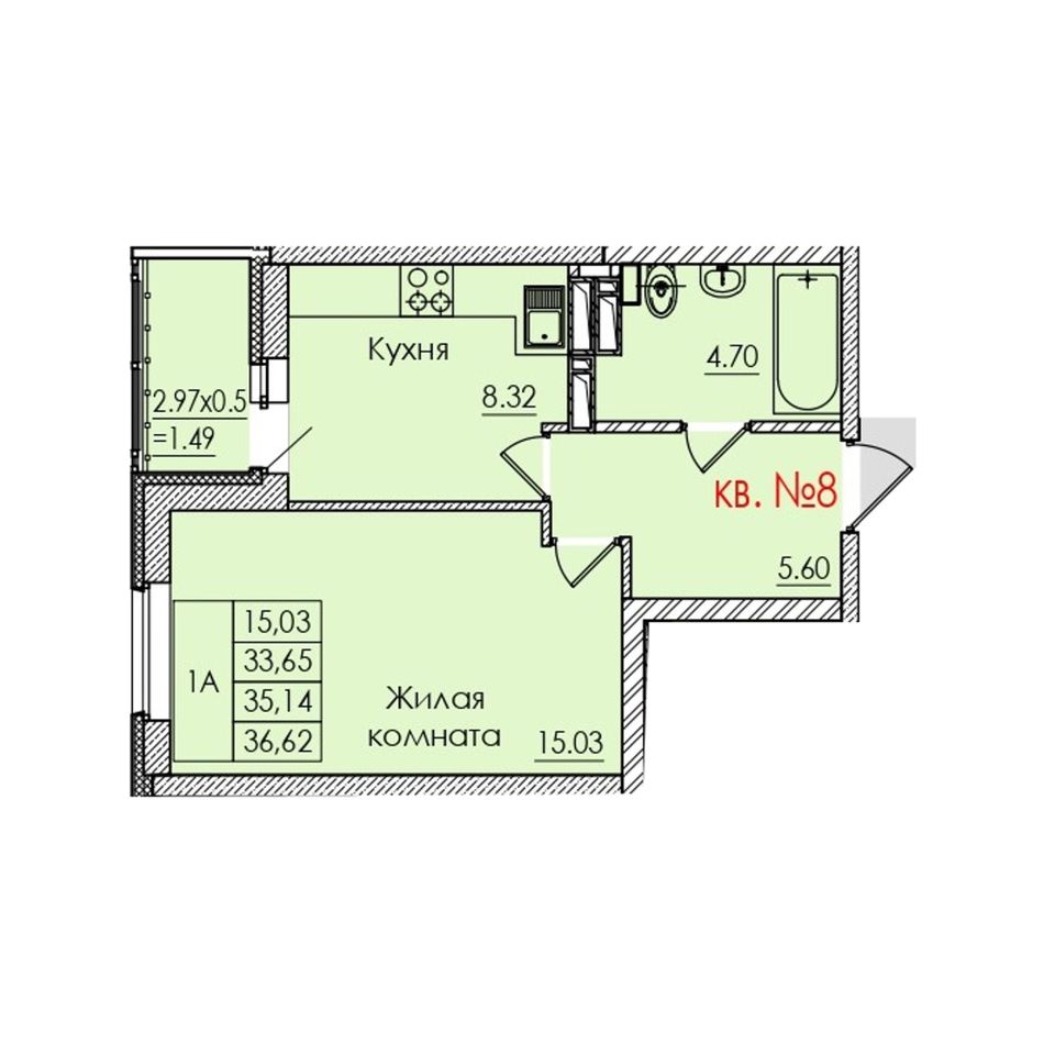 1-комнатная — 35,14 м² 1/20 эт. в Регата
