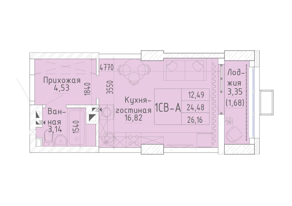 Общая площадь26,39 м²