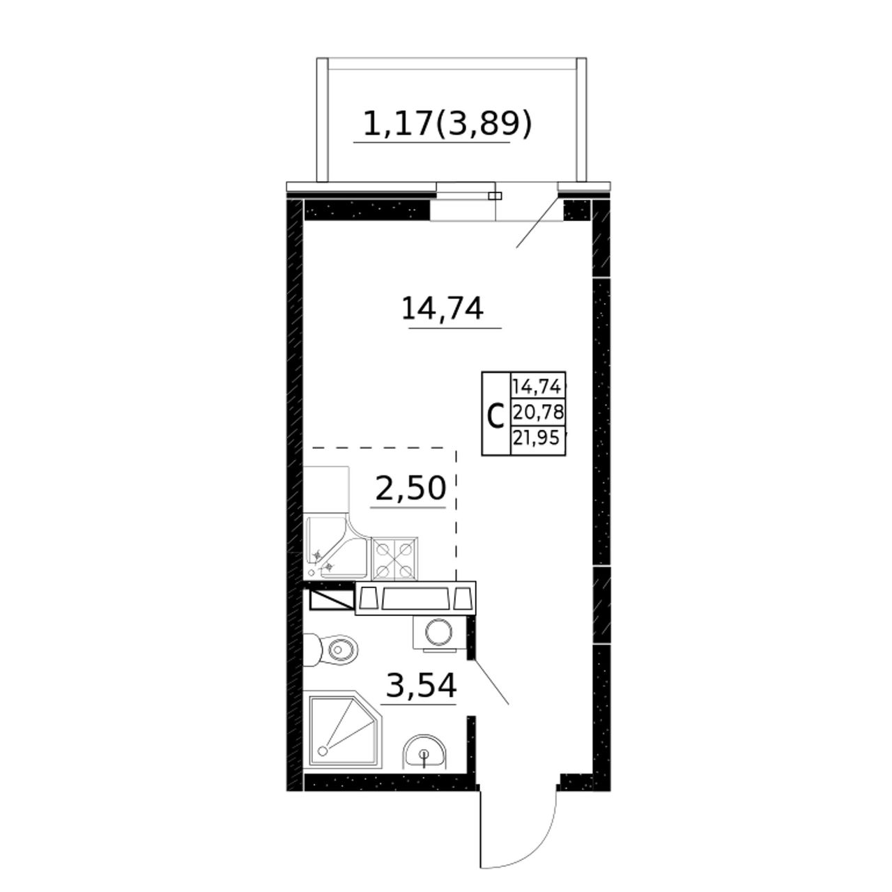 Студия — 21,95 м² 13/24 эт. в Свобода