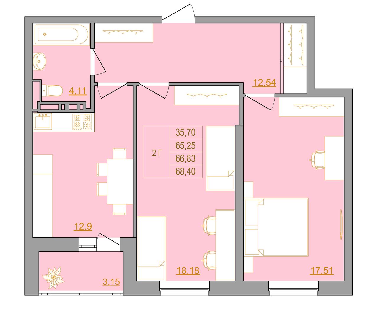 2-комнатная — 67,91 м² 8/22 эт. в Новый горизонт