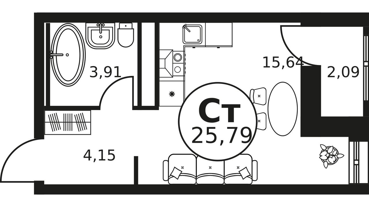 | Студия | 23 - 29 м² | 3,2 - 4,8 млн ₽ |