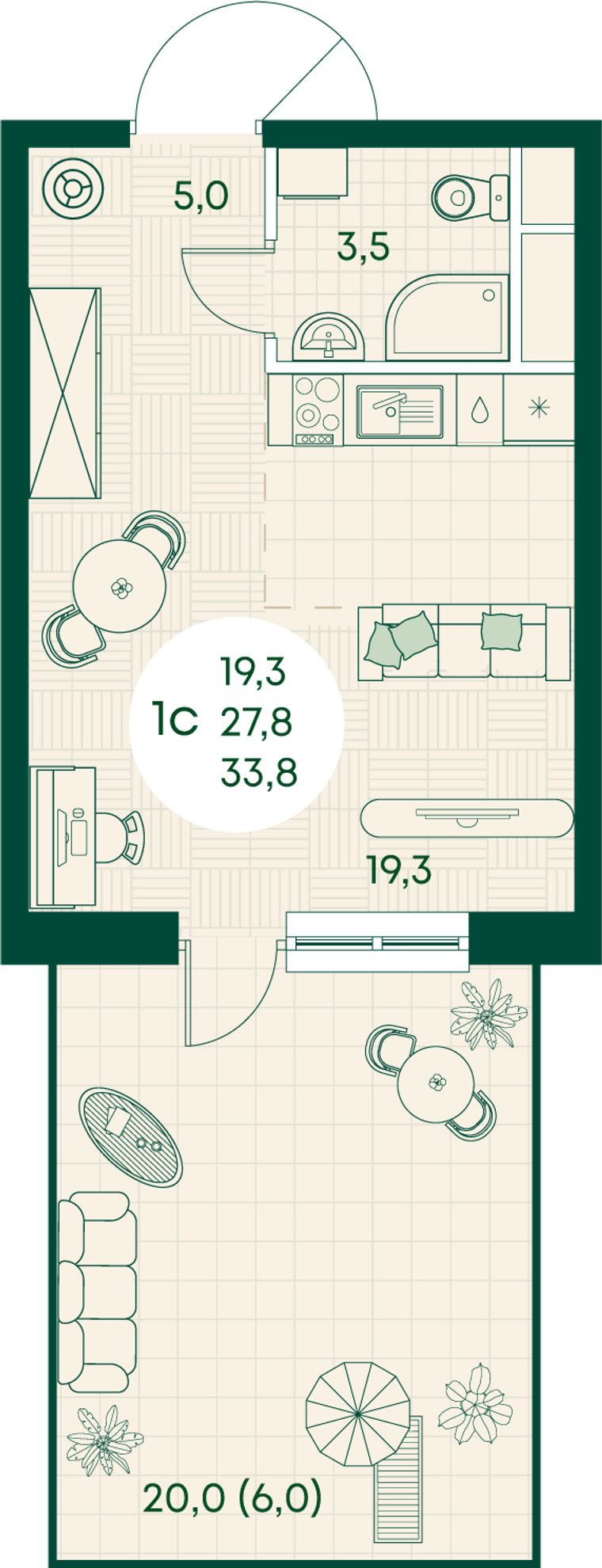 Общая площадь33,8 м²