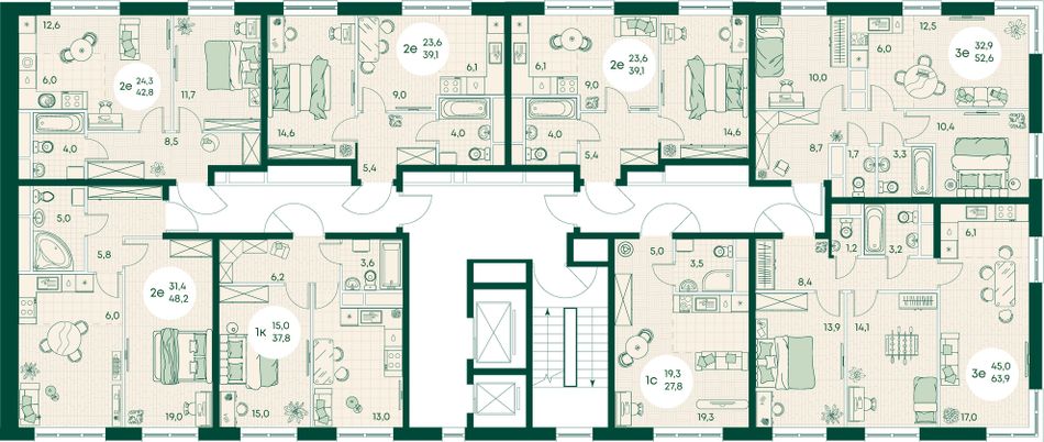 1-комнатная — 37,8 м² 10/17 эт. в Green Apple