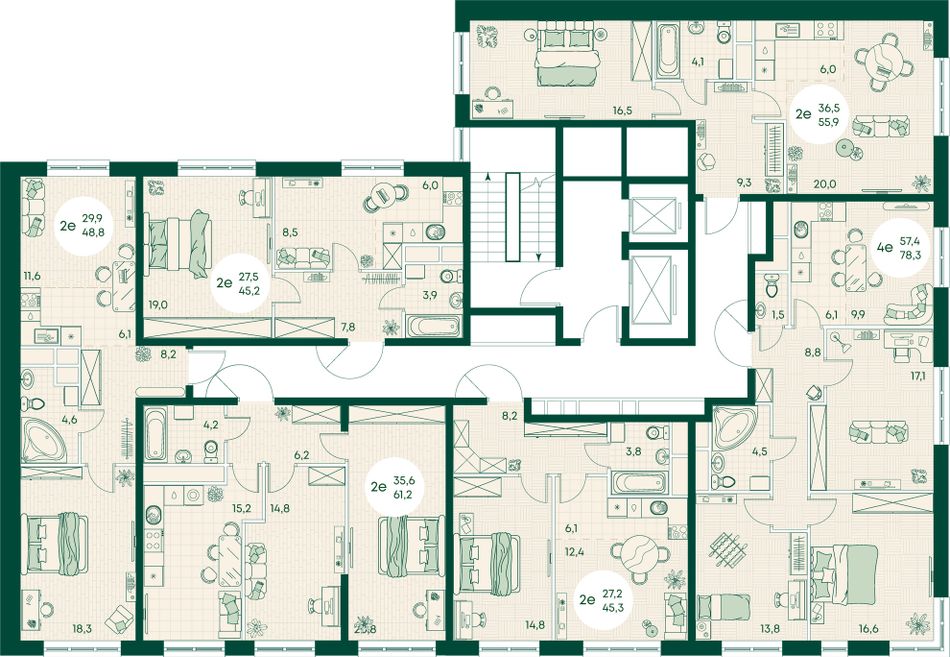 2-комнатная — 61,2 м² 11/17 эт. в Green Apple