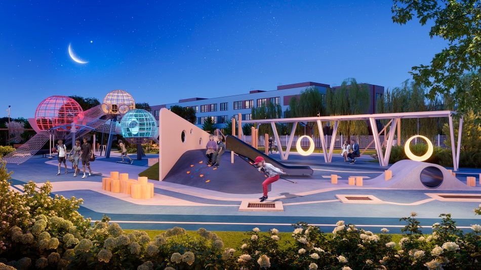 - Спортивные площадки, беговые и велосипедные дорожки.