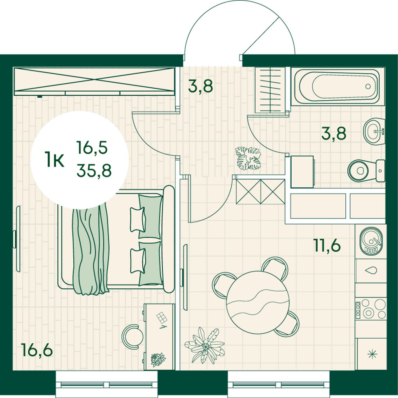 Общая площадь35,8 м²