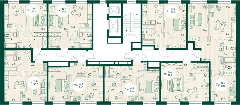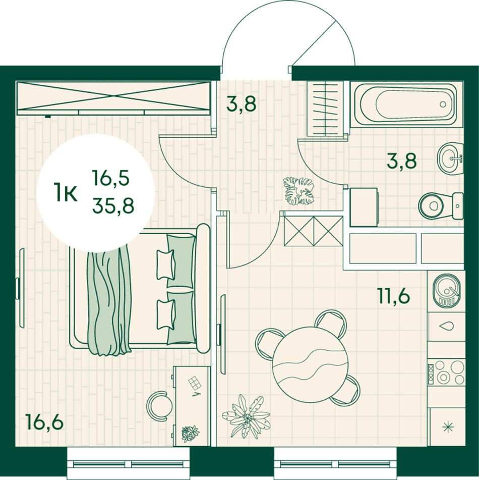 1-комнатная — 35,8 м² 3/17 эт. в Green Apple