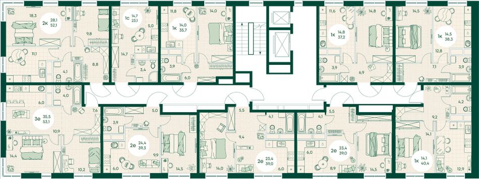 1-комнатная — 35,7 м² 8/17 эт. в Green Apple
