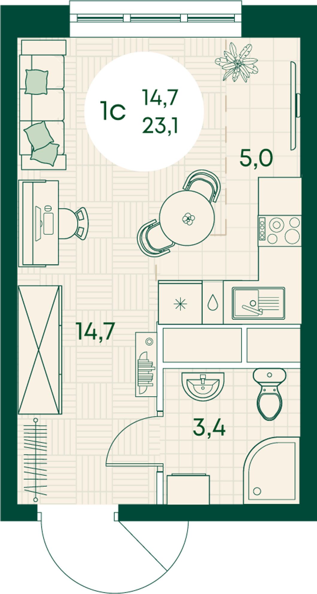 Студия — 23,1 м² 12/17 эт. в Green Apple