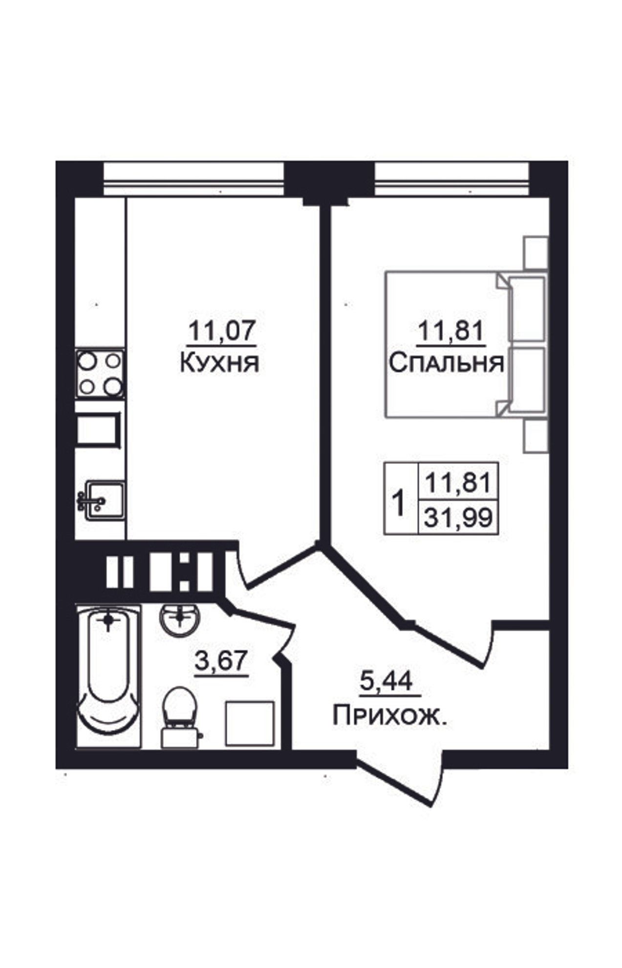 1-комнатная — 31,99 м² 1/9 эт. в Портрет
