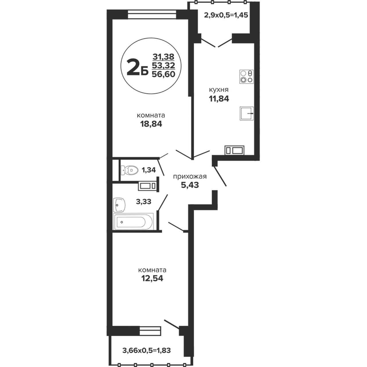 Общая площадь58,05 м²