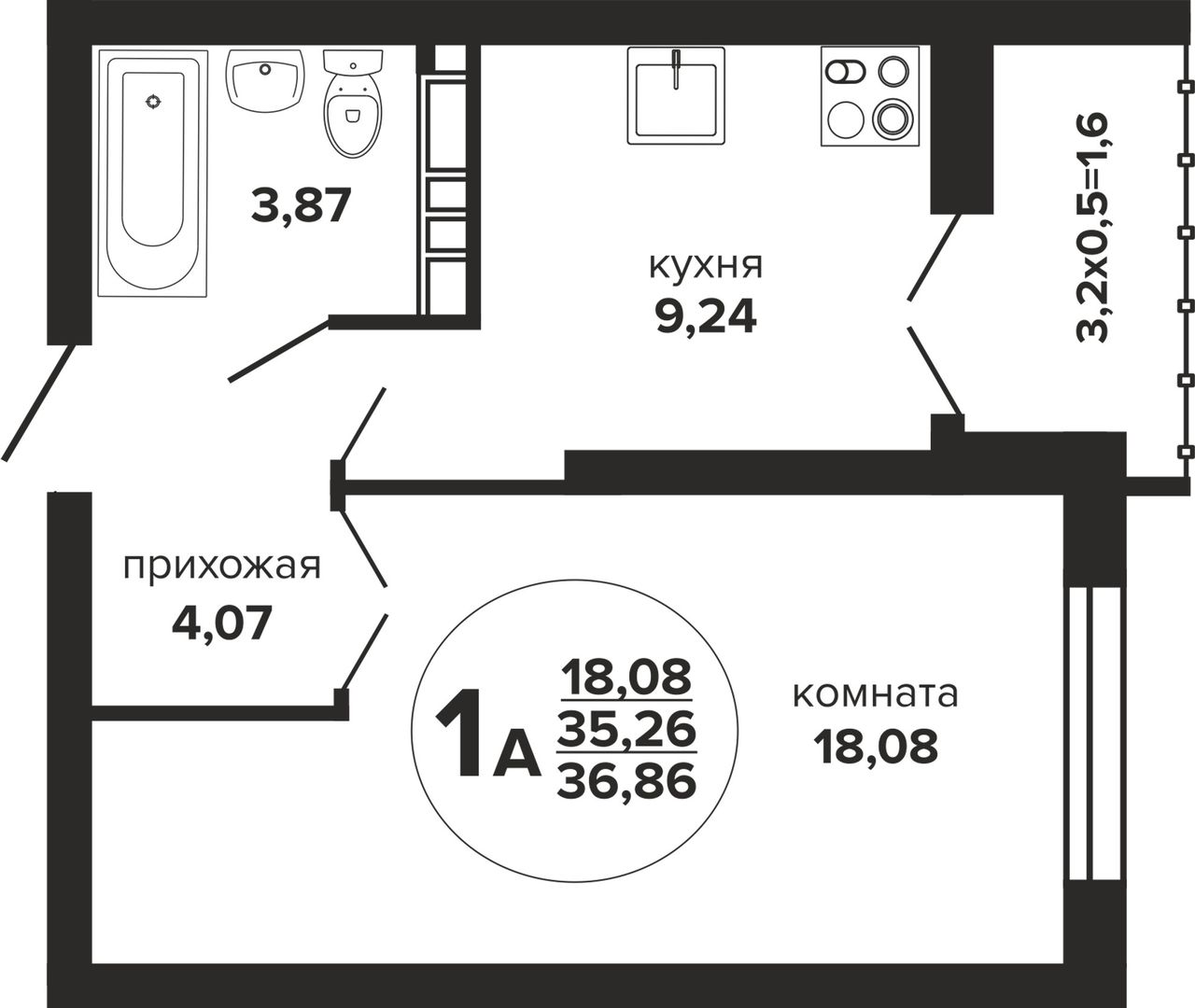 | 1-комн. | 34 - 41 м² | 4,8 - 5,2 млн ₽ |