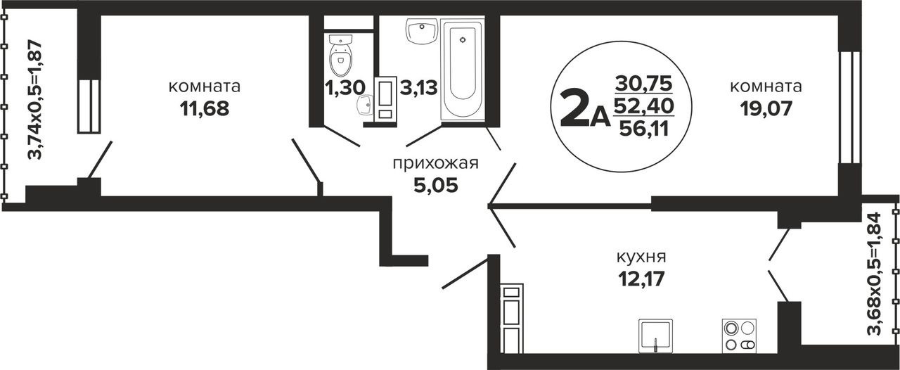 Общая площадь56,11 м²
