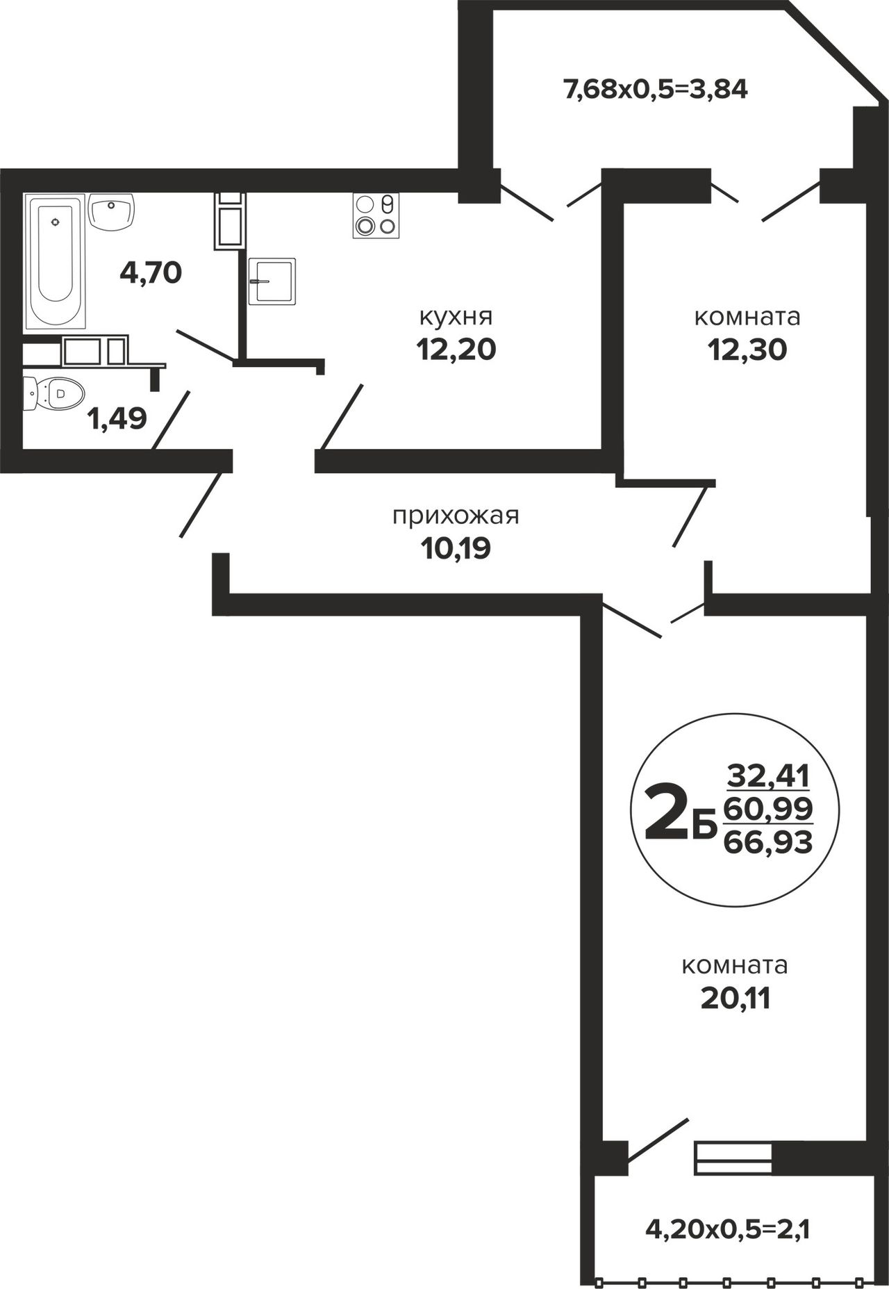 2-комнатная — 66,93 м² 10/24 эт. в Гулливер