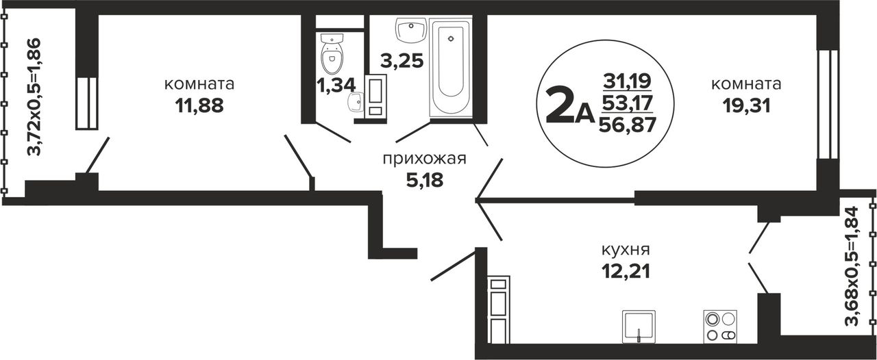 Общая площадь56,87 м²