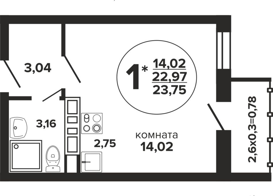 Студия | 23 - 28 м² | 3,7 - 4,4 млн ₽ |
