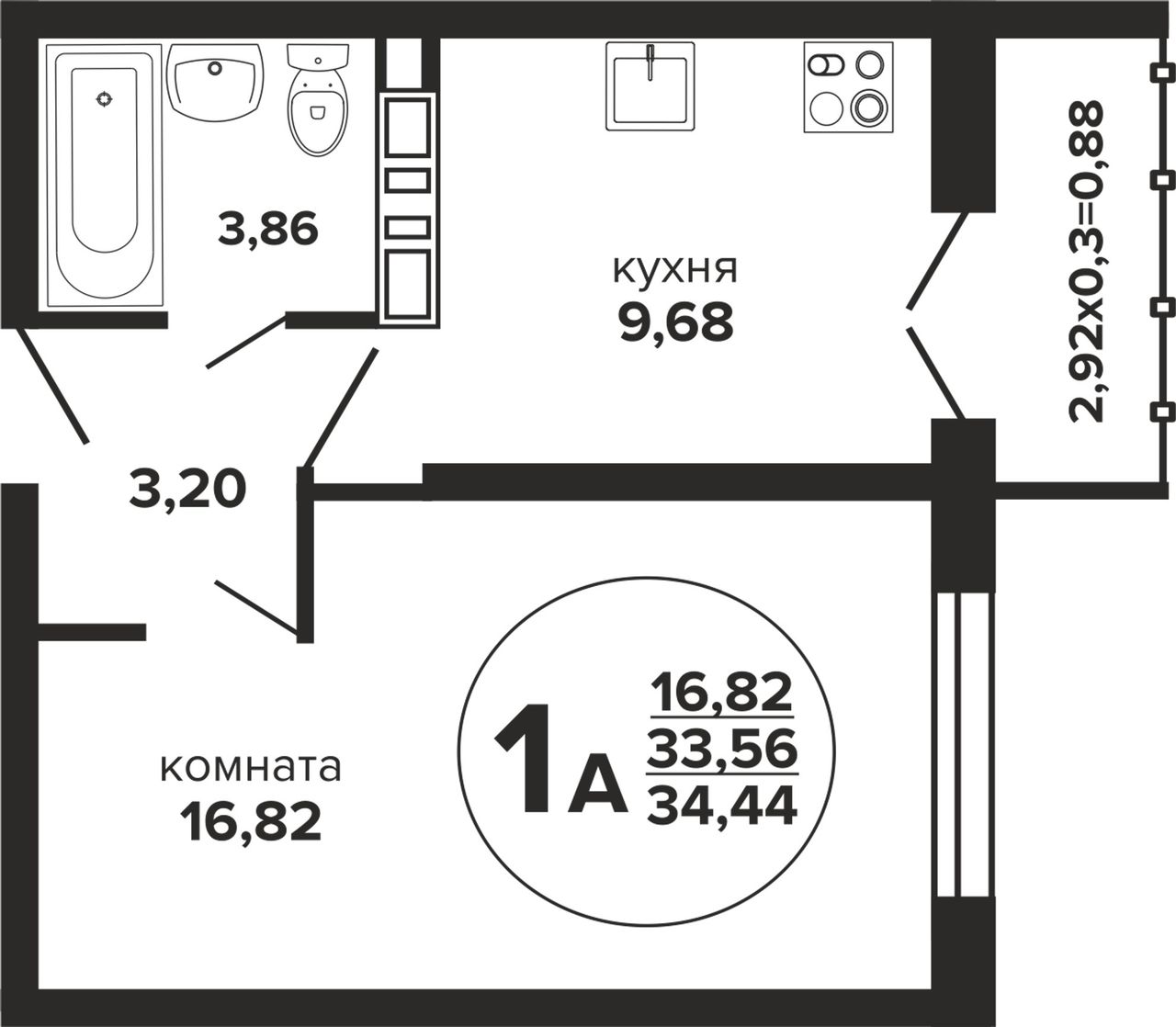 Общая площадь34,44 м²