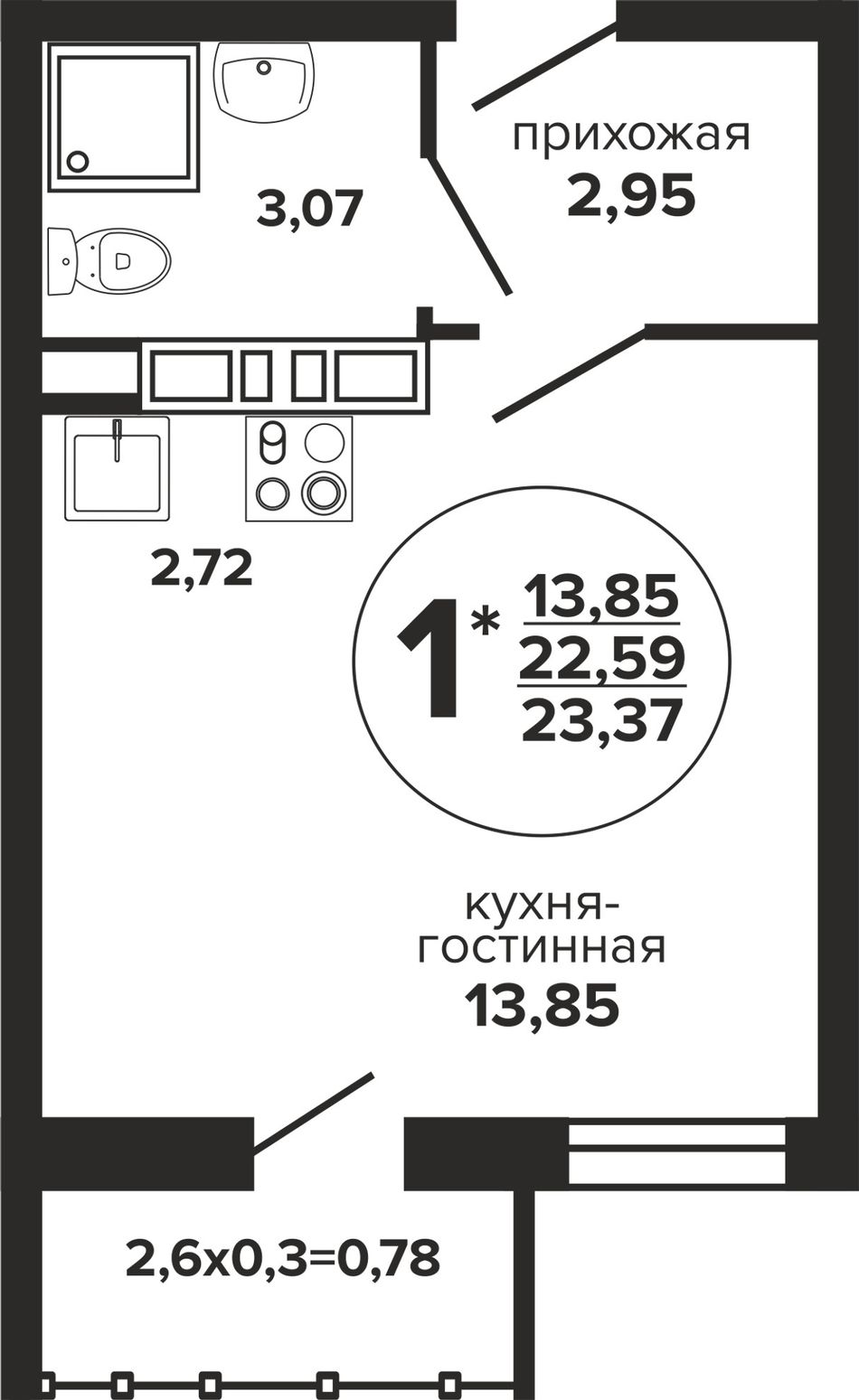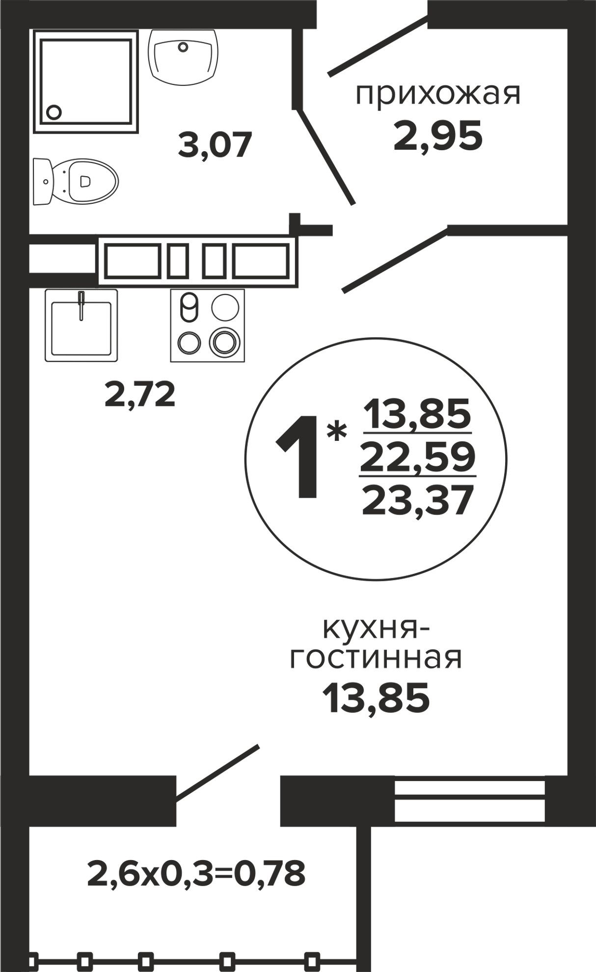 Студия | 23 - 28 м² | 3,7 - 4,4 млн ₽ |