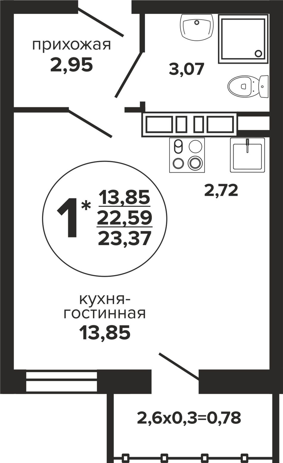| Студия | 23 - 28 м² | 3,7 - 4,4 млн ₽ |