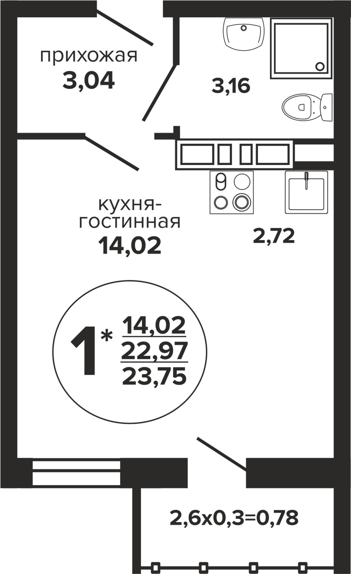 Общая площадь23,75 м²
