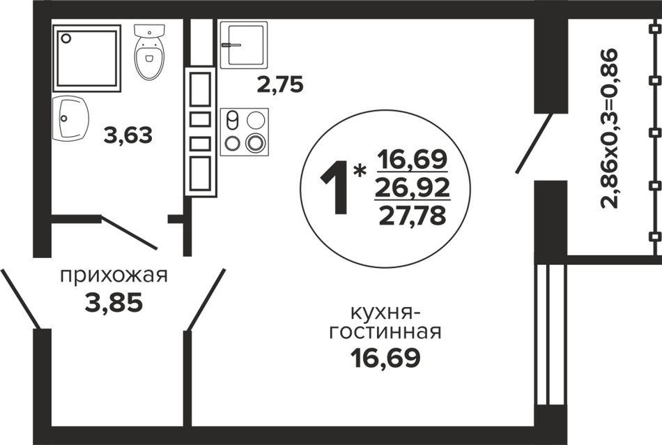 Студия | 23 - 28 м² | 3,7 - 4,4 млн ₽ |