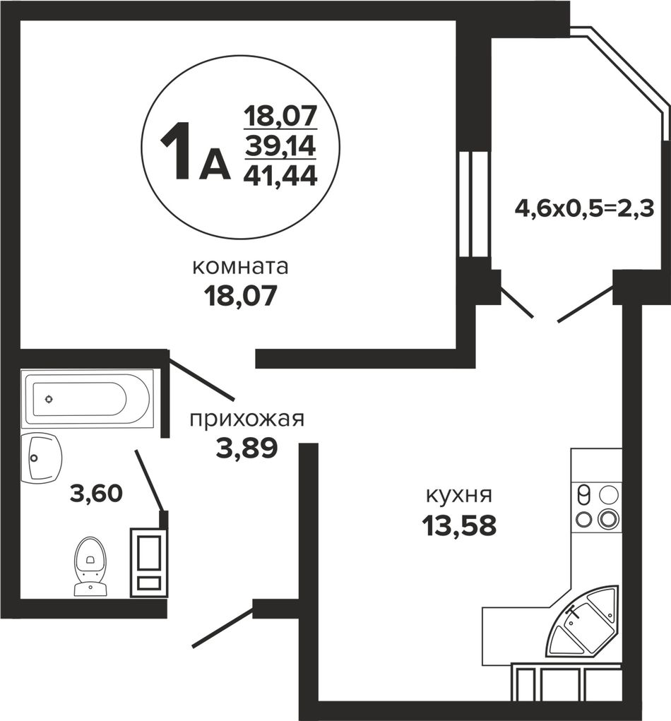 1-комнатная — 41,44 м² 20/24 эт. в Гулливер