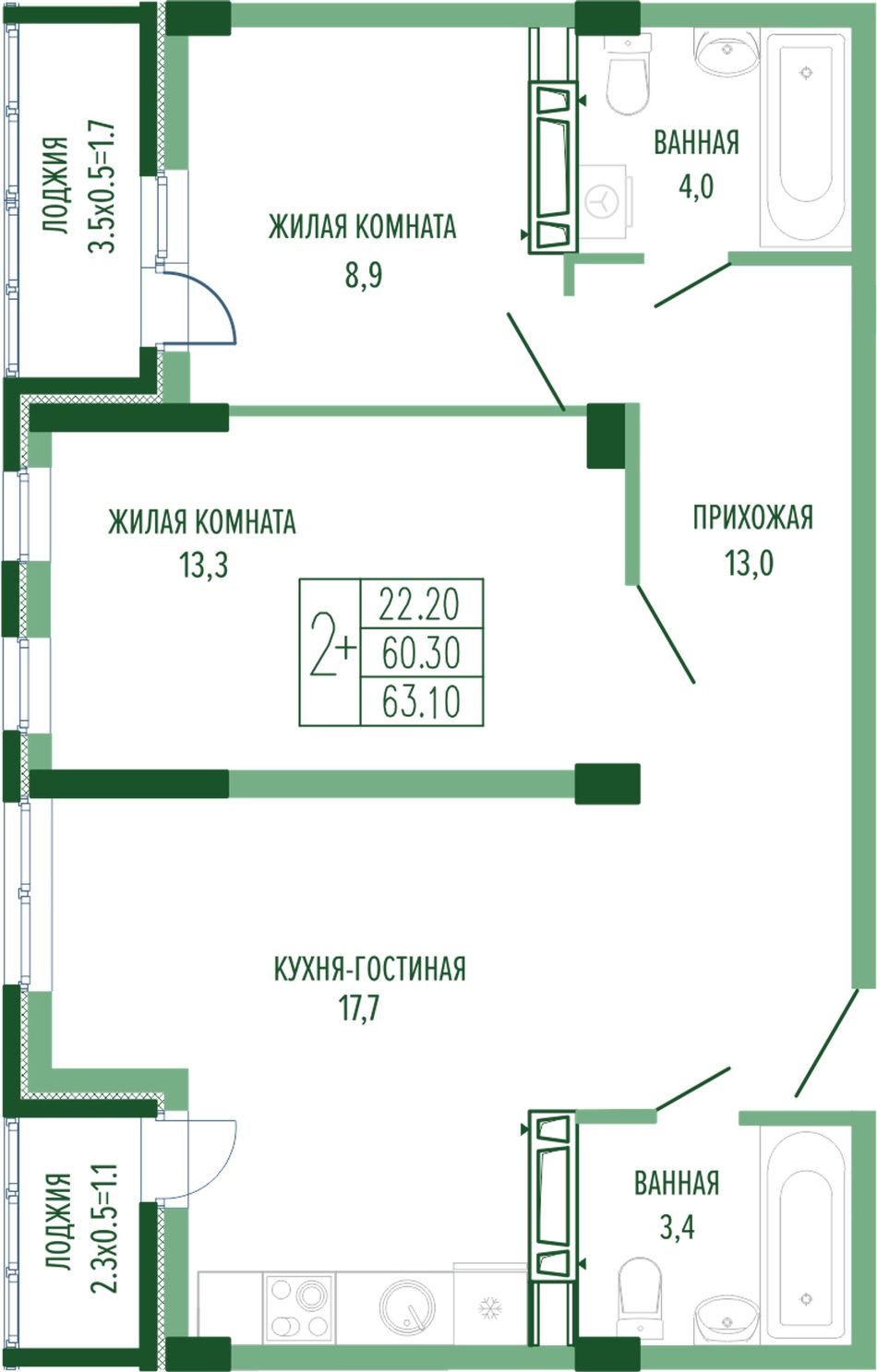 | 1-комн. | 38 - 63 м² | 9,1 - 16,1 млн ₽ |