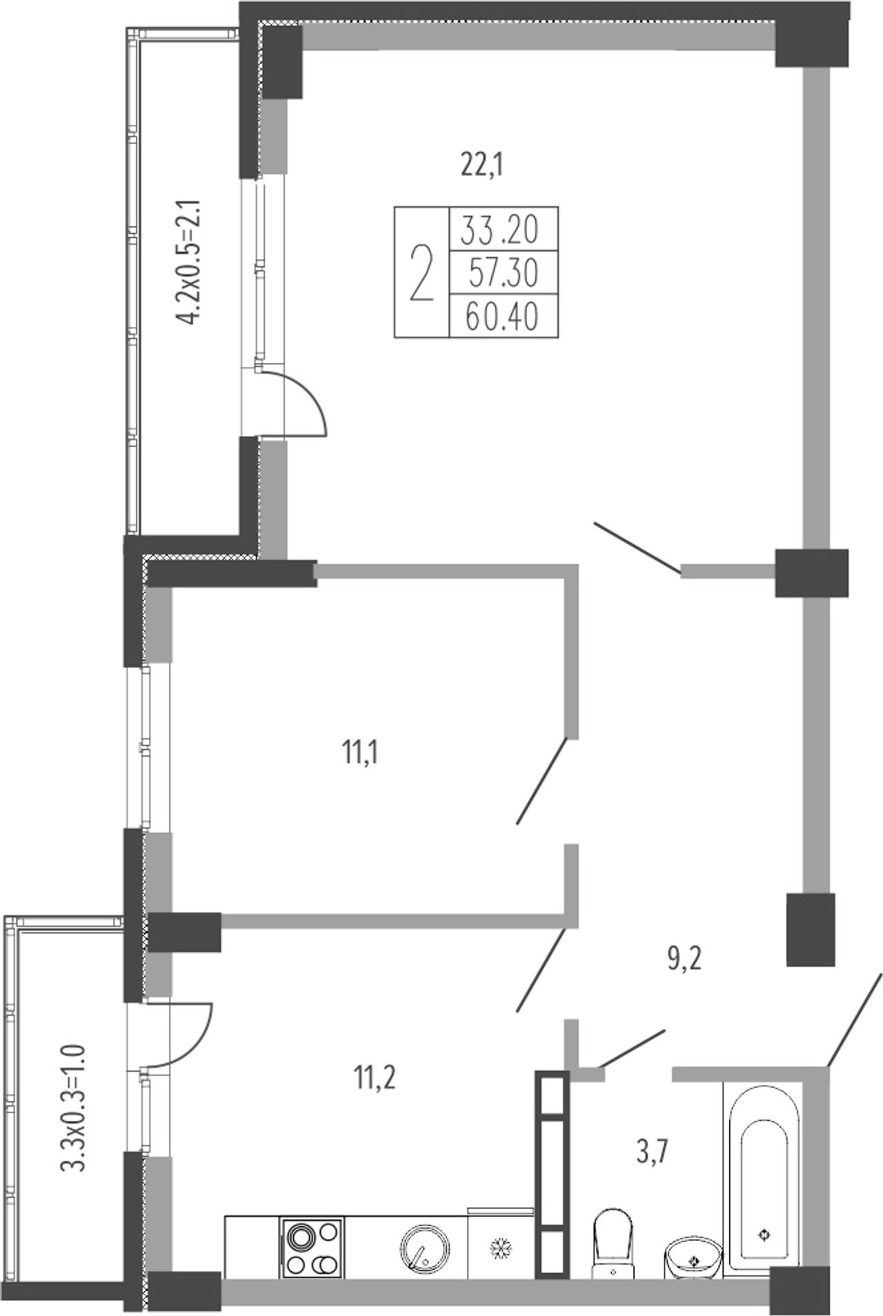 Жилая площадь33,2 м²