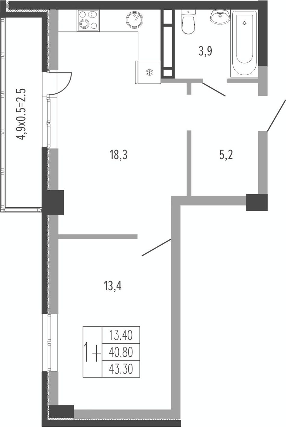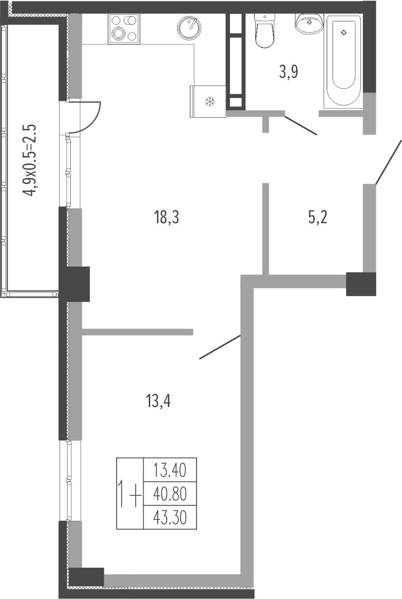 | 1-комн. | 34 - 41 м² | 4,8 - 5,2 млн ₽ |
