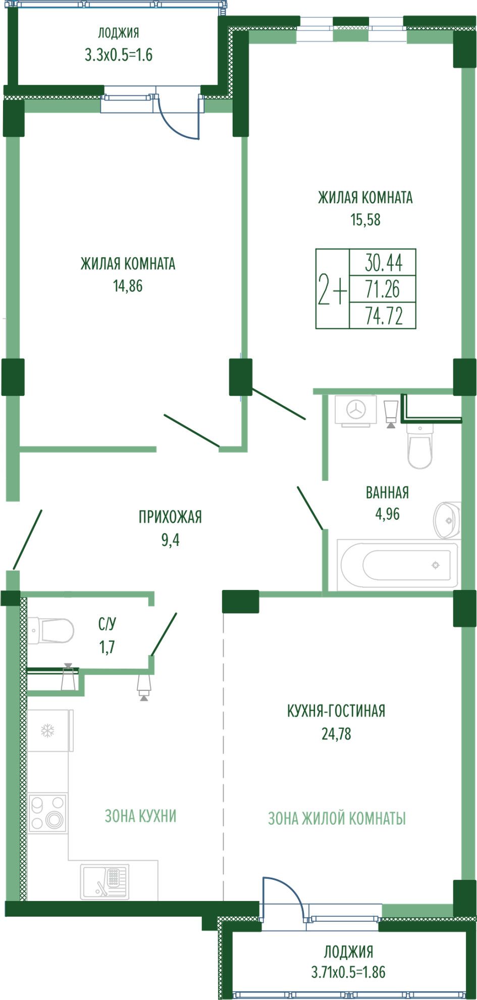 Жилая площадь30,46 м²