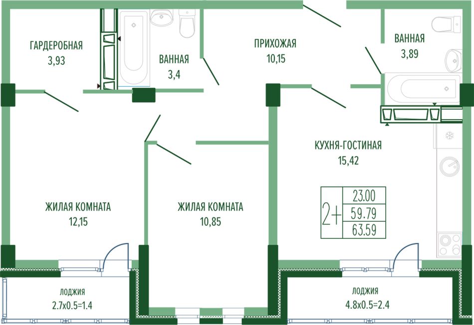 1-комн. | 37 - 63 м² | 8,2 - 15,8 млн ₽ |