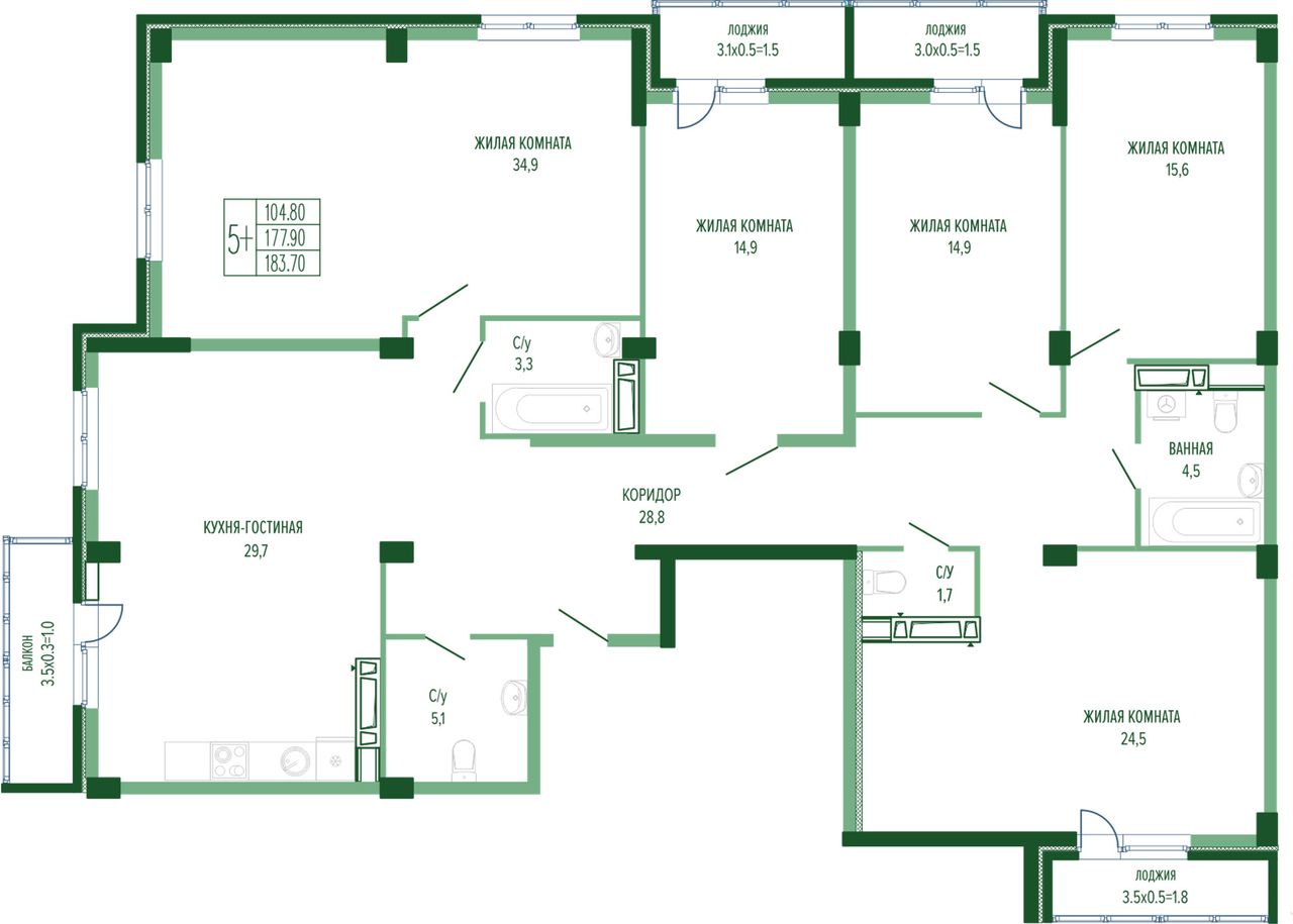 | 4+ комн. | 188 м² | 57,4 млн ₽ |