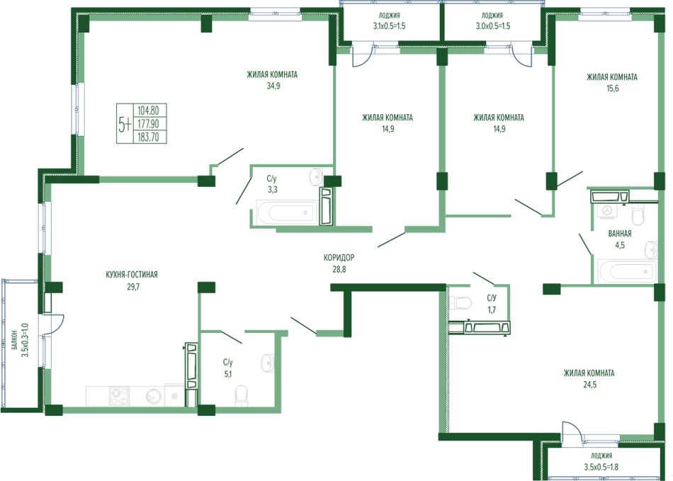 | 4+ комн. | 188 м² | 56,3 - 56,5 млн ₽ |