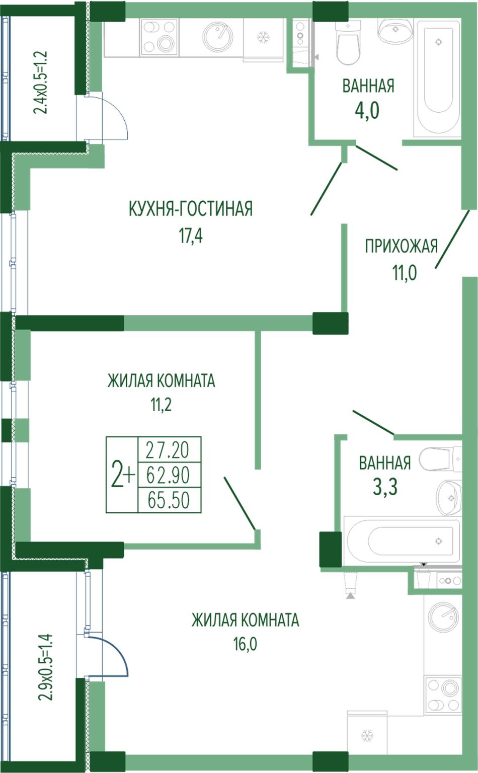 2-комнатная — 67,15 м² 1/7 эт. в Екатерининский парк