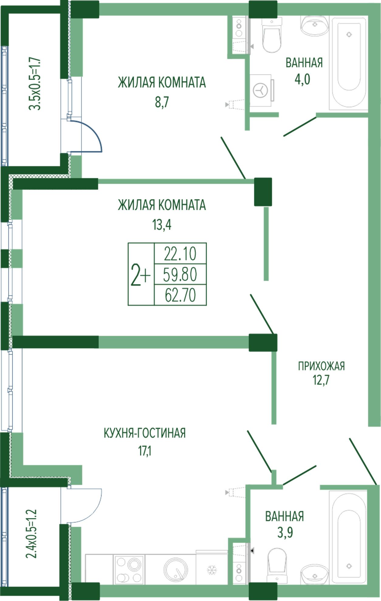 2-комн. | 57 - 81 м² | 11,4 - 24,2 млн ₽ |
