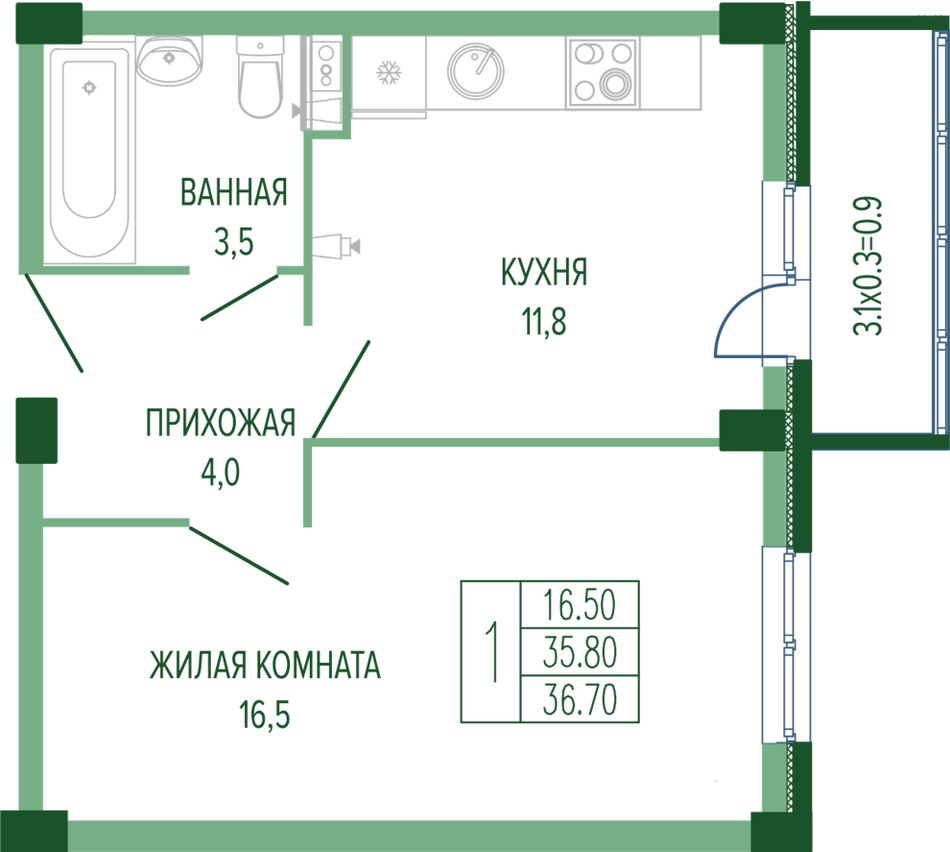 Общая площадь37,8 м²