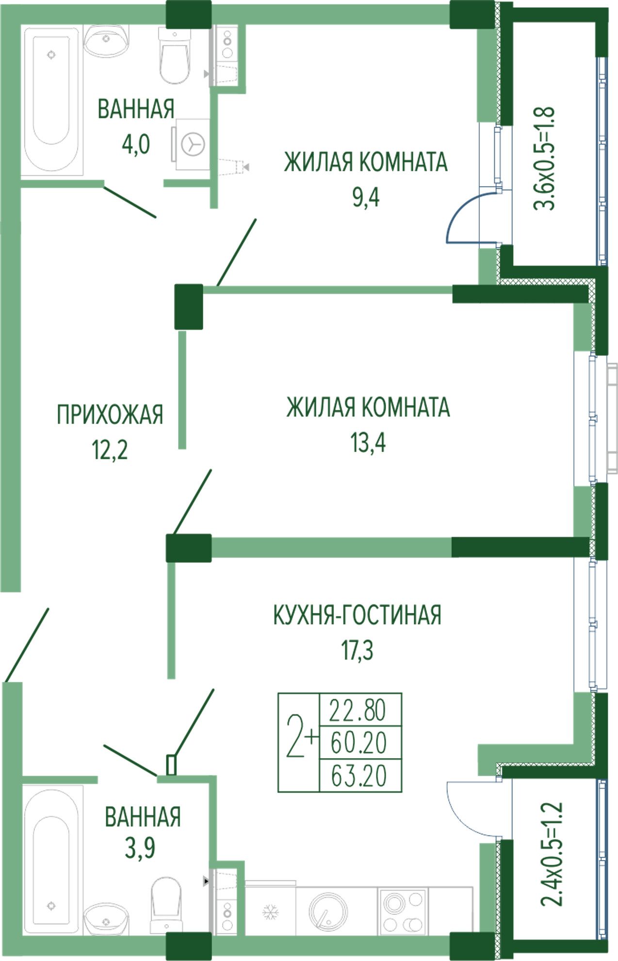 | 1-комн. | 38 - 63 м² | 9,1 - 16,1 млн ₽ |